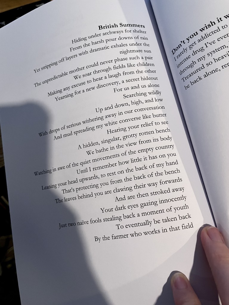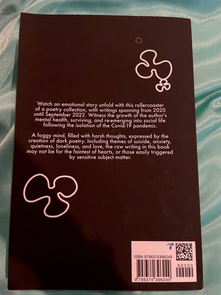 The book includes two years’ worth of writing and editing, beginning the skill of poetry form and structure whilst developing my own voice. It is worth noting that there are suicidal and heavy themes in the book which make it for adult audiences only.